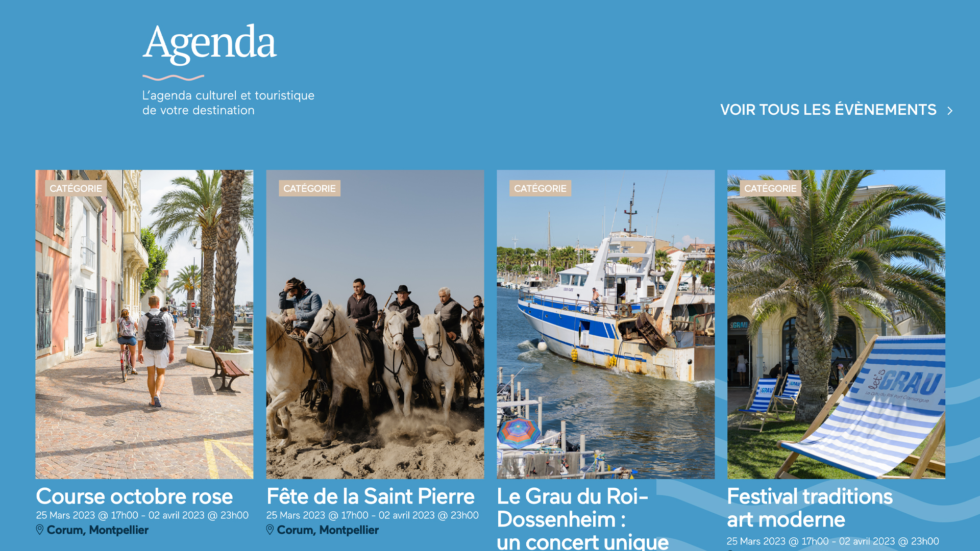 Un travail technique essentiel a été réalisé pour connecter le site à APIDAE. Nous avons intégré cet outil afin de permettre à l’Office de Tourisme de mettre à jour, en temps réel, les informations sur les événements, les hébergements et les activités disponibles au Grau-du-Roi.